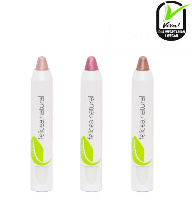 Naturalna wielofunkcyjna kredka Felicea to uniwersalny kosmetyk, który sprawi, że wykonanie makijażu będzie jeszcze łatwiejsze. Kredki idealnie zastąpią bronzer, rozświetlacz, róż a także cienie do powiek czy pomadkę. Konturowanie twarzy okaże się bardzo proste. Kredka doskonale poradzi sobie z uwydatnieniem ust, zastąpi cień do powiek, podkreśli linię rzęs i nada wyrazistości oku. Odpowiednia konsystencja kredki, jej trwałość oraz delikatna formuła zapewniają łatwą aplikację oraz wyrazistość wykonanego makijażu. Przeznaczony do każdego rodzaju skóry. Produkt wegański. Dostępne kolory: #151 Champagne #152 Lavender #153 Mokka Waga 3g