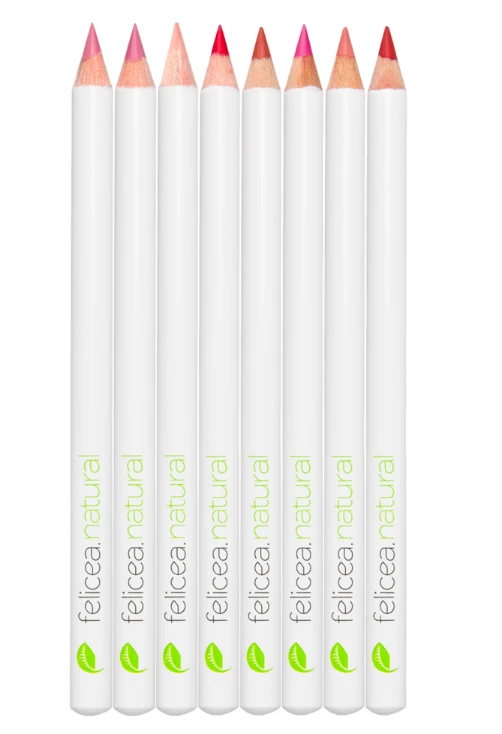 Szukasz precyzyjnej i łatwej w użyciu konturówki do ust? Sięgnij po naturalną konturówkę Felicea, która zapewnia optymalną głębokość koloru. Miękka formuła sprawia, że konturówka nie drażni delikatnej skóry ust, a naturalne, dobrze napigmentowane kolory długo utrzymują się na ustach. Naturalna konturówka do ust idealnie podkreśla kształt ust i dekoruje je kolorem. Ten naturalny kosmetyk może stanowić bazę pod szminkę, przedłużając trwałość naturalnego makijażu ust. Gama kolorystyczna konturówek idealnie współgra ze szminkami znajdującymi się w naszej ofercie. Naturalna konturówka równomiernie się rozprowadza i nie pozostawia smug. Dostępna jest w 6 wersjach kolorystycznych. Waga 1g.